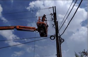 Manutenção em linhas de média tensão na qual fazemos a substituição de isoladores partidos de passagem e de amarração, bem como da secção inferior a LA 110, e a substituição de postes inclinados.